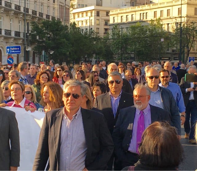 Μεταξύ των διαδηλωτών Δικηγόροι, Μηχανικού και φυσικά Γιατροί, μέλη του Ιατρικού Συλλόγου Αθηνών και του Πανελλήνιου Ιατρικού Συλλόγου.